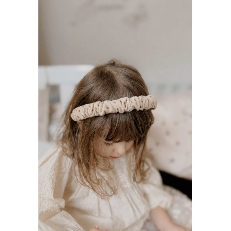 Detská riasená čelenka Mrs. Ertha je nežný doplnok, ktorý okamžite doladí každý outfit – od bežného dňa až po výnimočné chvíle. Je vyrobená zo 100 % organickej bavlny, príjemnej k citlivej detskej pokožke.