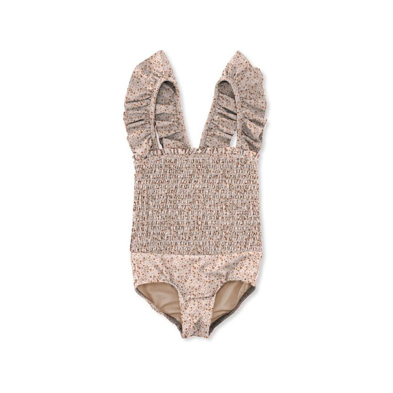 Mrs Ertha plavky na ramienka s volánmi sú vyrobené z recyklovaného polyamidu s UV50+ ochranou. Pre väčšie pohodlie pri nosení sú podšité.a majú skvelú pružnosť aby netlačili a prispôsobili sa telu ako druhá koža. Plavky sú balené v ekologickom a kompaktnom bavlnenom vrecúšku. Model Stella je dostupný vo dvoch vkusných vzoroch Little Garden a Vintage Squares vo veľkostiach 2 a 3 roky.