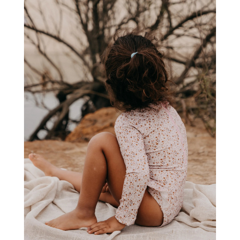Mrs Ertha plavky s dlhým rukávom a jemným volánovým detaiom sú vyrobené z recyklovaného polyamidu s UV50+ ochranou. Pre väčšie pohodlie pri nosení sú podšité a majú skvelú pružnosť aby netlačili a prispôsobili sa telu ako druhá koža. Plavky sú balené v kompaktnom bavlnenom vrecúšku. Model Ariella je dostupný v troch vkusných vzoroch Cute Strawberries, Little Garden a Vintage Squares.