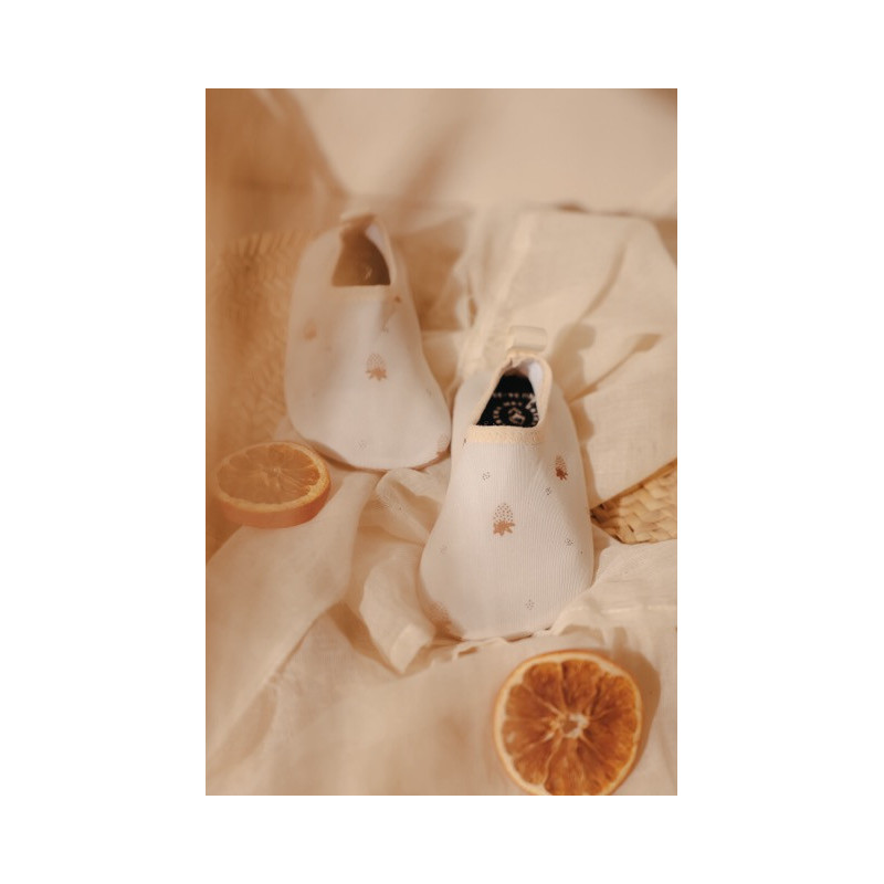 MRS. ERTHA Detské papuče Vanilla sú ideálnou voľbou pre malé deti na nosenie v interiéri. S protišmykovou a mäkkou ohybnou podrážkou poskytujú maximálny komfort a bezpečnosť aj na chladných podlahách. Fungujú ako ponožka, prispôsobia sa detskému chodidlu a udržia nôžky v teple. Vyrobené zo 100% bavlny, papuče sú ľahké, priedušné a balené v praktickom bavlnenom vrecúšku.